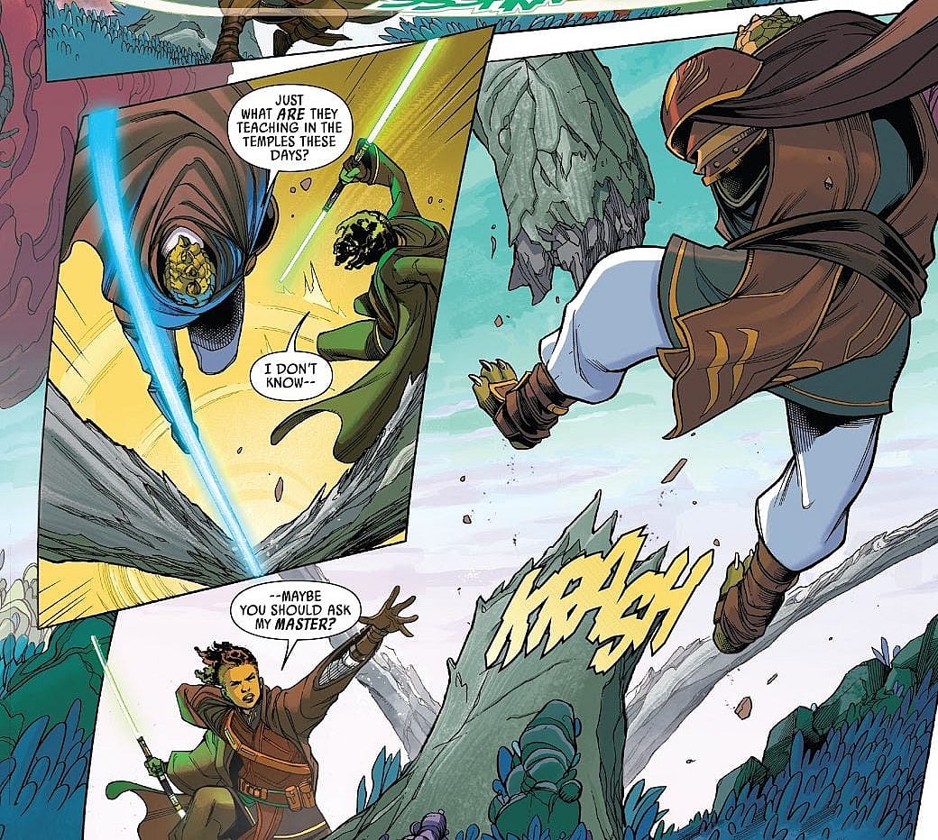 The first issue, which was published by Marvel Comics on Wednesday, follows Jedi Padawan Keeve Tannis and her master Sskeer.