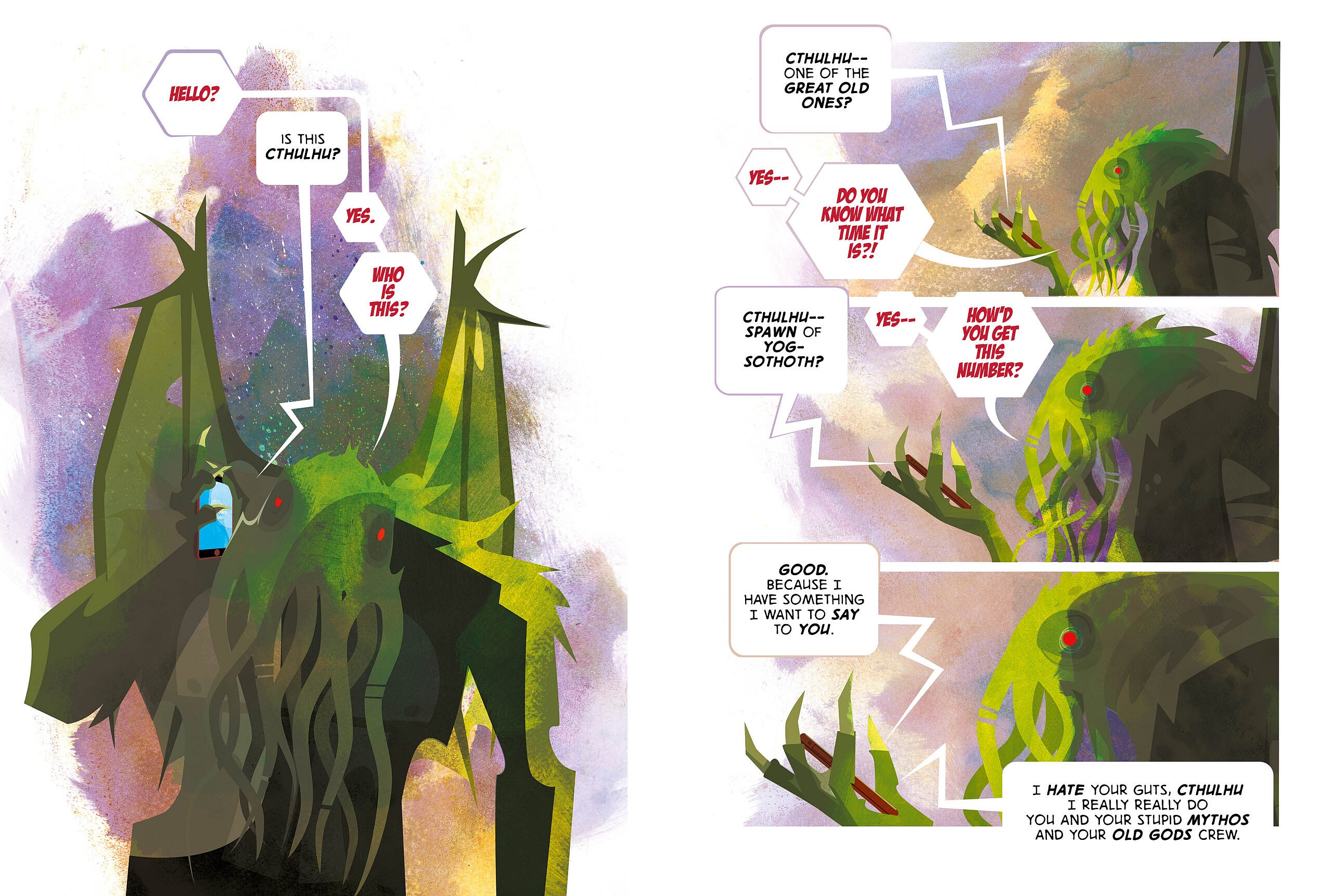 The official solicitation states, “Even Cosmic Gods fear an unknown caller! When Cthulhu, the Great Old One, receives a phone call in the middle of the night, he is not prepared for the conversation that is about to take place.”
