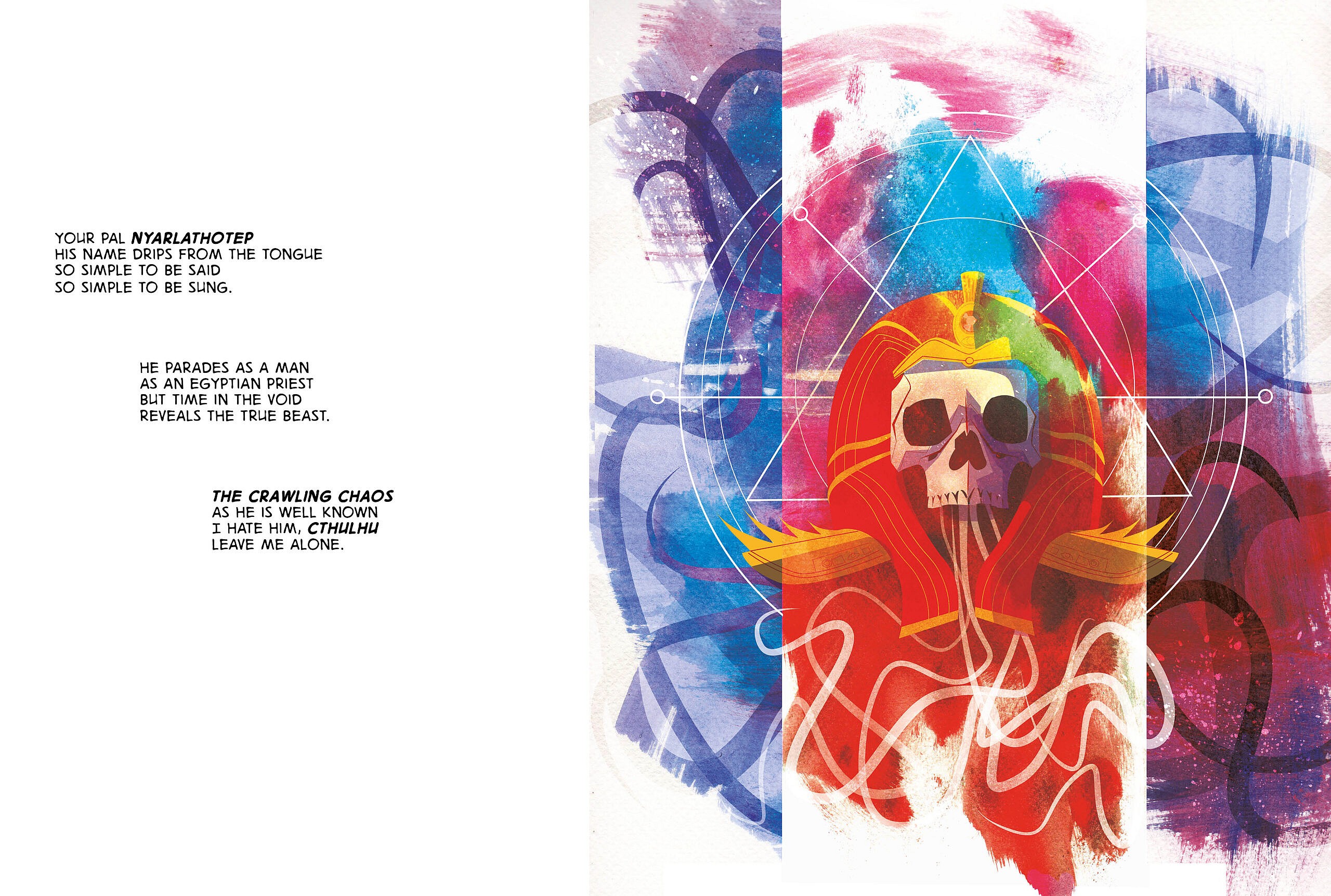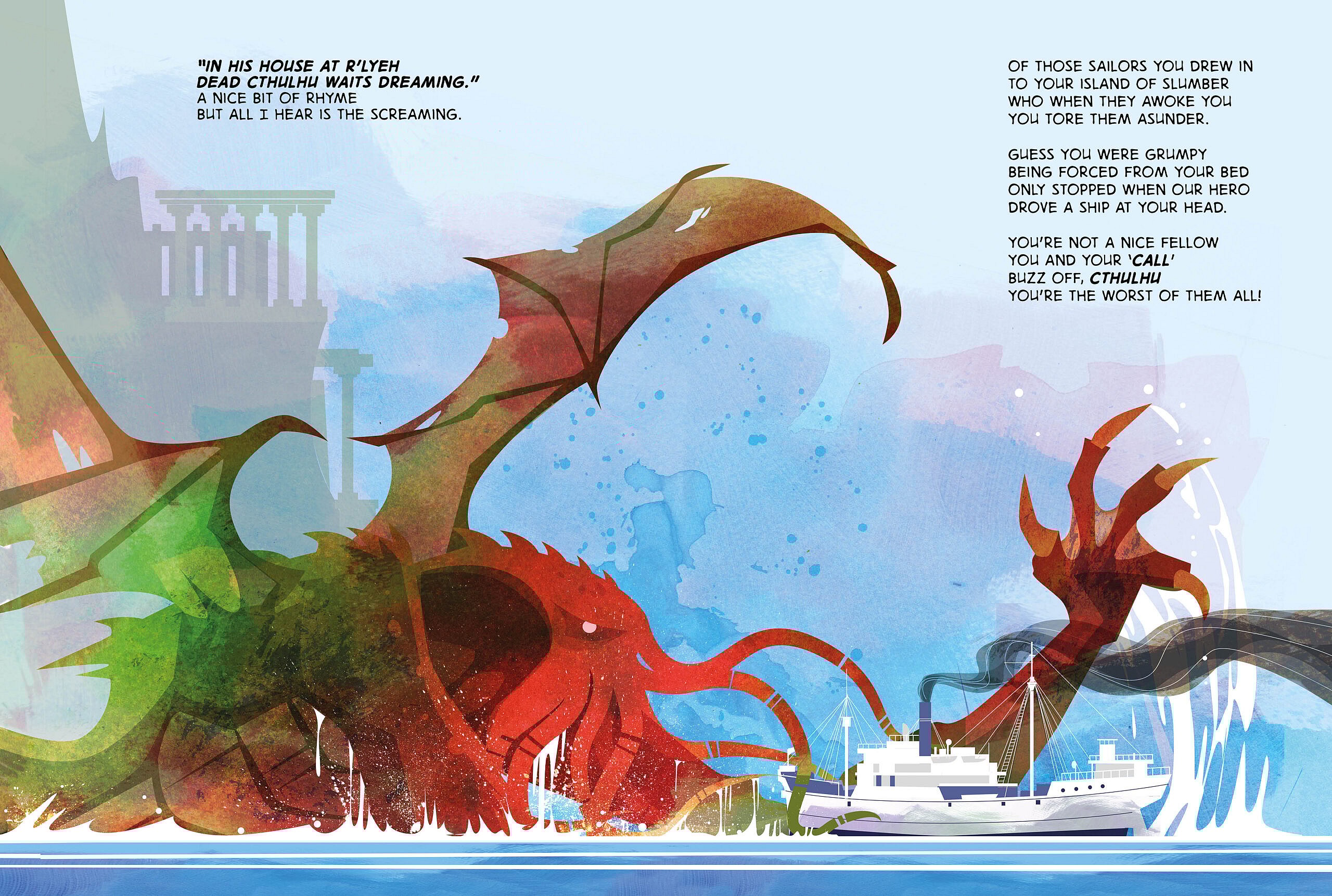 In the press release, the publisher describes the story as “part comic book, part art book, part children’s storybook” that takes readers on a “fun irreverent trip through the classic stories of HP Lovecraft.”