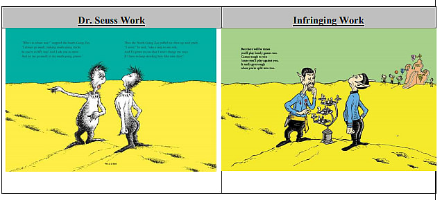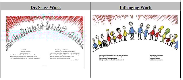 They claimed the “defendants have misappropriated many of the most recognizable protected elements of the Dr. Seuss Copyrighted Works into the Infringing Work, including making wholesale slavish copies of the Dr. Seuss Copyrighted Works’ distinctive illustrations and text.”