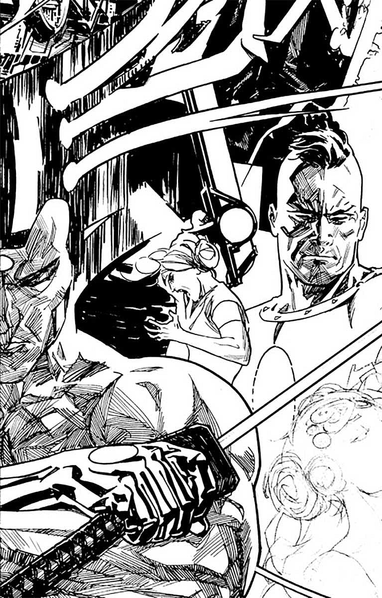 Get up close and personal with the fearless Bloodshot epic of the summer with this 48-page special, stripping down BLOODSHOT REBORN #14 to pencils, inks, and letters alone! Spotlighting Mico Suayan’s brutally immaculate pencil artwork alongside Lemire’s complete script, Valiant’s next essential Director’s Cut must be seen to be believed! Experience BLOODSHOT ISLAND in the purest form possible right here with an all-access presentation of the savage first issue featuring the first appearance of the character that has everyone talking: DEATHMATE!