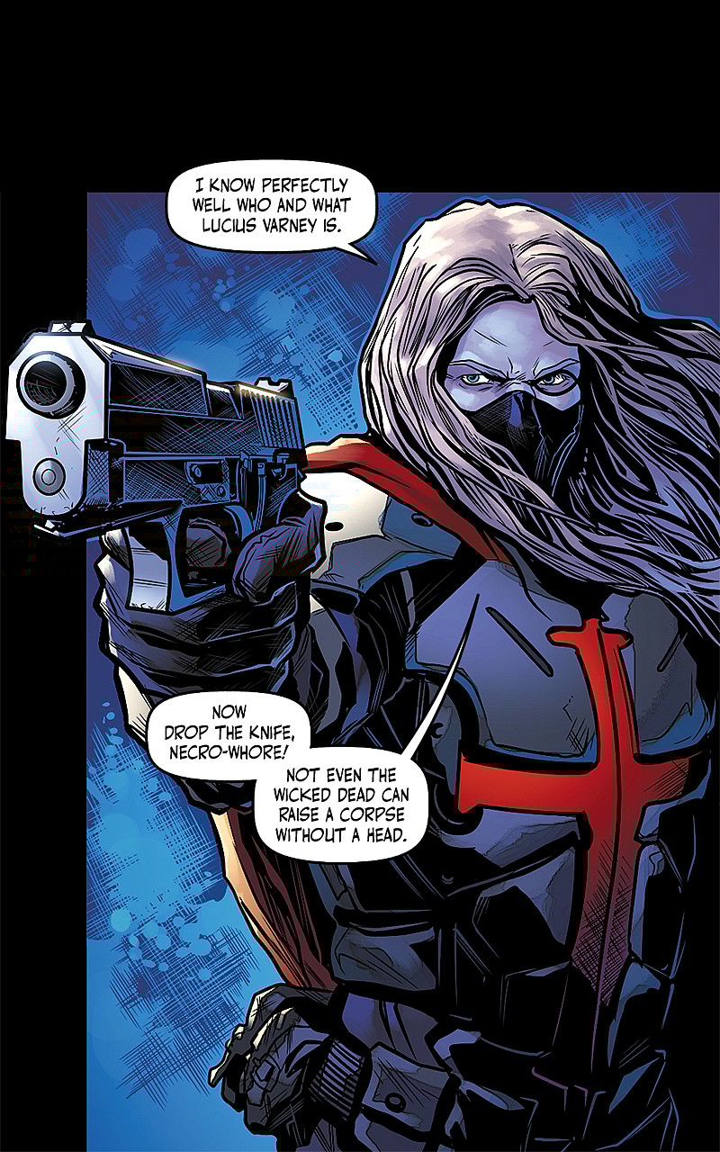 The new Kickstarter will collect the first six issues of the series that are currently available to read on Arkhaven.com. However, it also offers collected editions of issues 7-12 as well. These issues continue the story of Dante Fitzalan, Arika su-Fitzalan, Julian Varney, Denisa Denue Remords, and Andre Montbard and “follows the bitter vendetta being fought between two of the rival vampire factions, a vendetta that was, unbeknownst to both factions, caused by a hostile third party.”