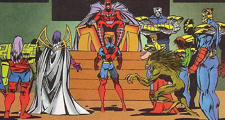 Magneto had built a floating fortress, Avalon, for mutants who sided with his way of doing things. He created a team of his own in his Messiah complex, naming them the Acolytes. During the funeral for Illyana Rasputin, Magneto and his team touch down to earth. He invites all who are willing to walk a different path from Xavier to ascend to Avalon. A battle ensues and the X-Men seem to have the upper hand in the fight against Magneto. That is, until Colossus joins the fray and beats back the X-Men, assisting Magnus in fighting them off. In the end, he ascends to Avalon with the rest of the Acolytes.