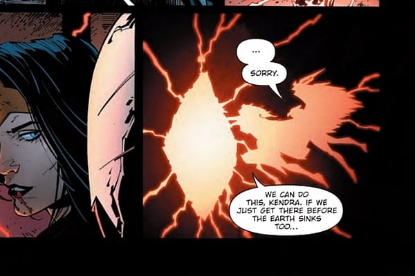 Then, as the obvious foreshadowing of her words spells out, Kendra and Diana wander into something unspeakable. The two heroes witness the corruption that has literally laid the DC Universe low. It causes every hero and villain to become a bastardized, demonized version of themselves. Even the most powerful of characters fall to the power of Barbatos.