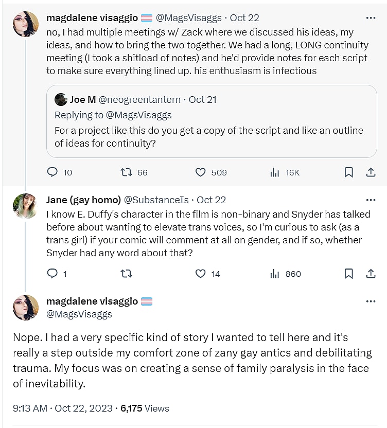 Visaggio’s behavior has been a pattern of erratic attacks on fans, which makes him an odd choice to helm the first tie-in properties to Zack Snyder’s new science fiction universe. Having him on the comic prequel can only alienate fans, and with Visaggio admitting his work generally is not in his wheelhouse, there doesn’t seem to be a storytelling reason for the hire.