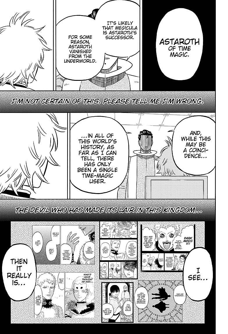 Catching an uneasy Julius as he finishes up a call with Marx, Damnatio reveals that in the course of his research into the families of the Clover Kingdom’s devil hosts, he discovered that no documents made mention of the supreme devil Megicula being present within the Qliphoth.