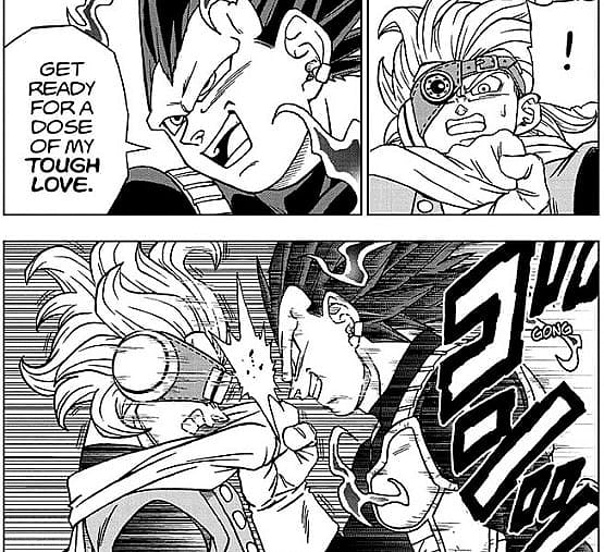 As the battle between the two warriors ensues, Granolah finds himself taken off-guard by Vegeta’s sudden boost in strength, and after Vegeta reveals that his universe’s God of Destruction, Beerus, taught him “about this power,” the Cerealian questions, “So this God granted you this power?”