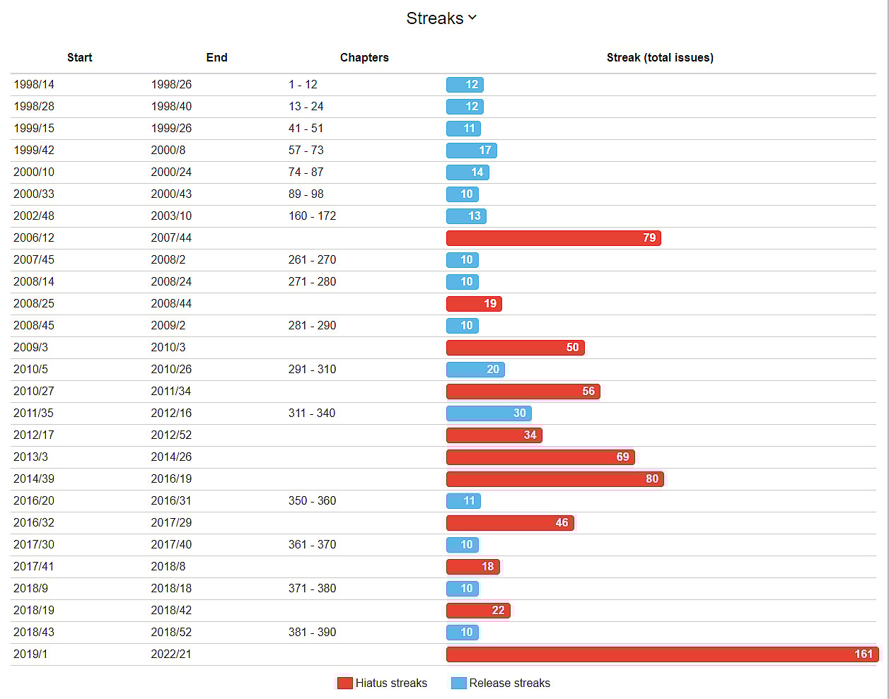 streak of total issues with 161 last chapter being released November 26, 2018.
