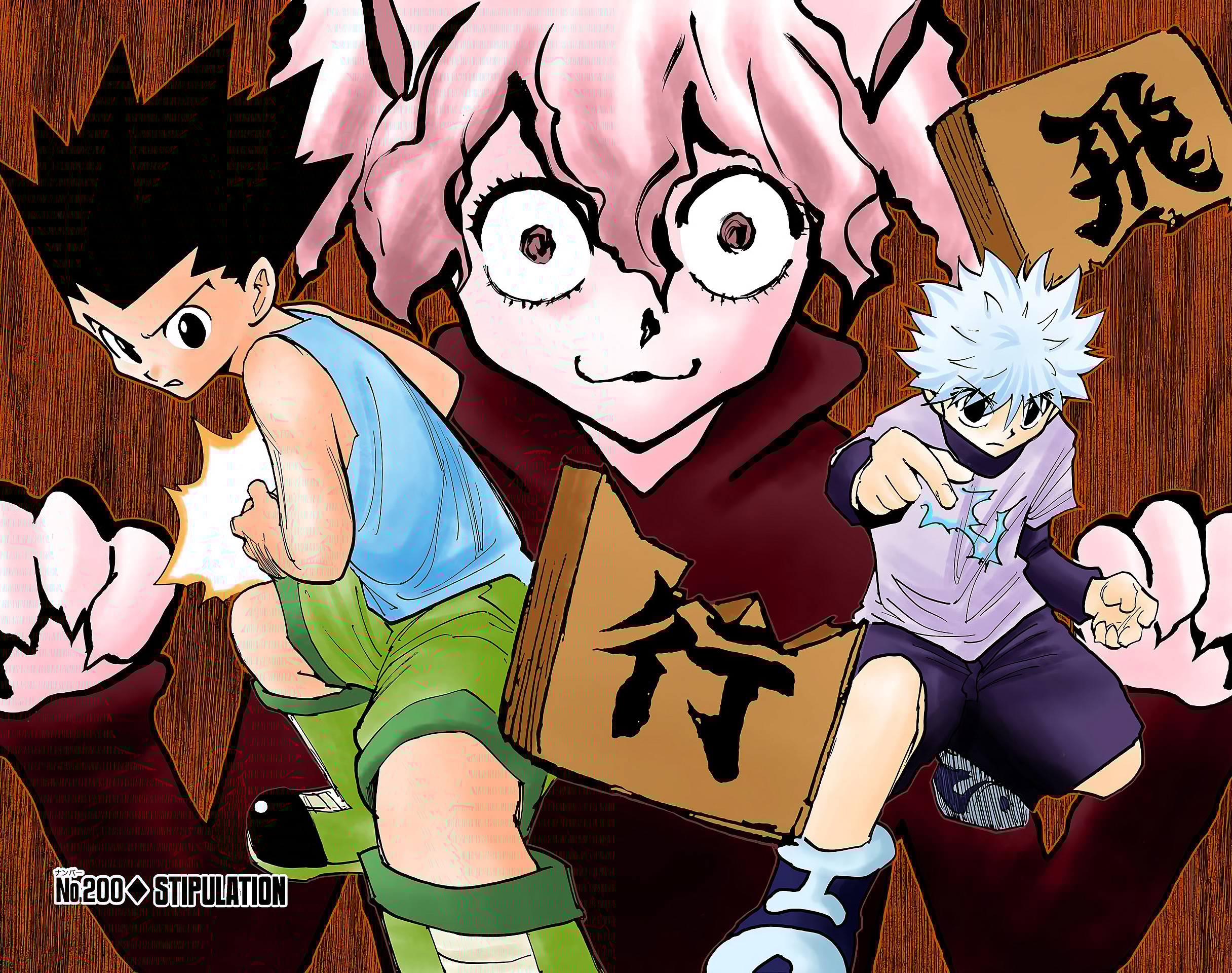 “About characters, I have finished the inking process over pencil drawing for ten chapters!” Togashi announced. “There may be some fixes, though. I’ll continue drawing my manuscripts for the next 10 chapters. Plus, I’ll announce how inking whole chapter is proceeding. I have tons of drafts”