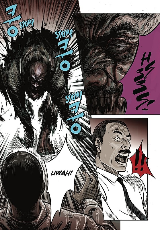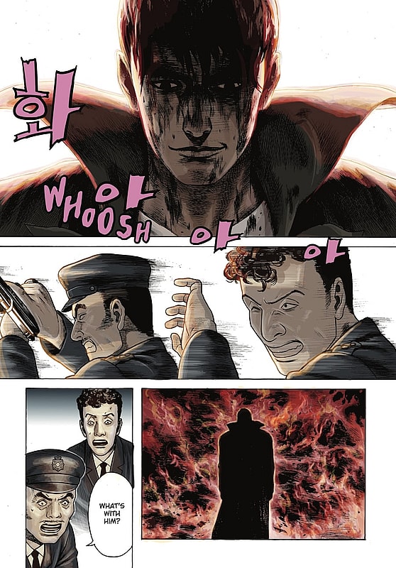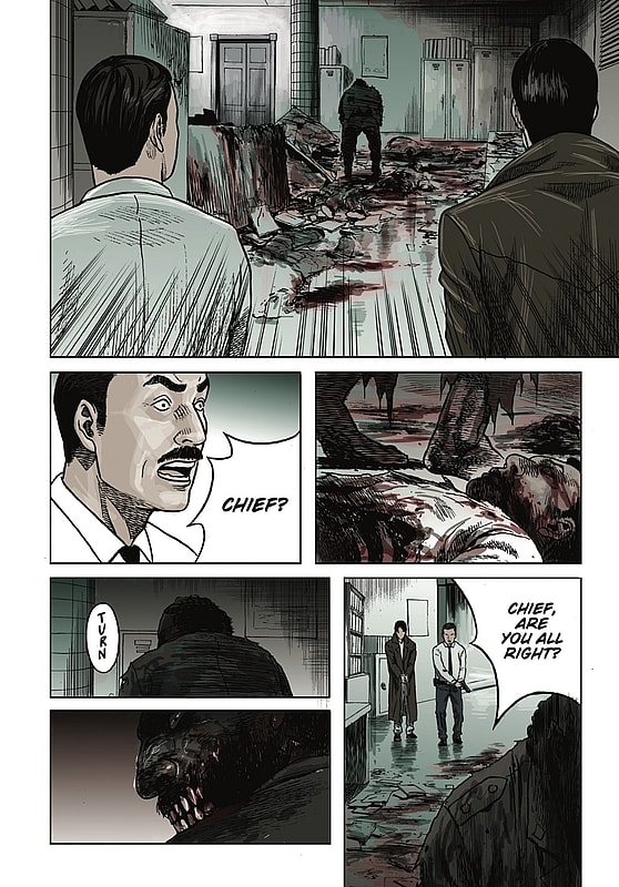 This realism is best employed by Ignito during scenes featuring individuals infected by the Wolf Virus, as his dark tones and cross hatched shading give the bloody wolf-vampire hybrids a level of viscerality usually reserved for Hollywood movies.