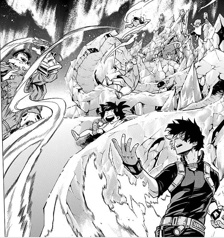 Her suggestion appears to work wonders as Todoroki, Bakugo, Inasa, and her work together to form a giant playground with an ice slide as the centerpiece.