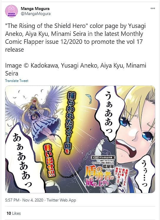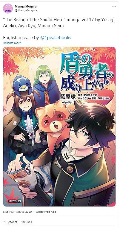 Along with this image, Manga Mogura also shared the cover for the upcoming The Rising of the Shield Hero Vol. 17.