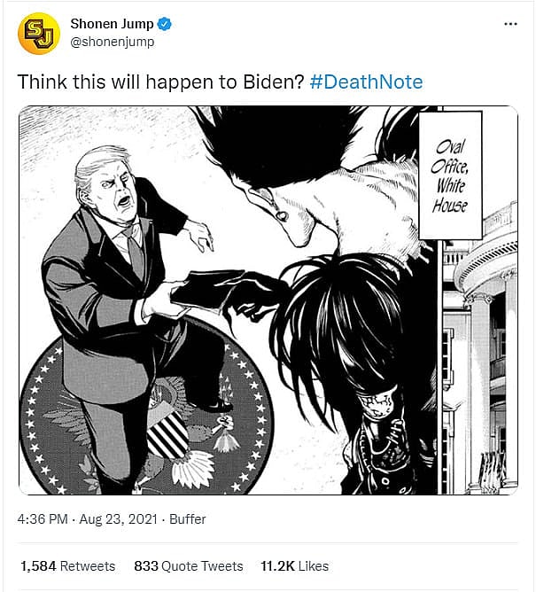 Along with the panel they asked, “Think this will happen to Biden? #DeathNote”