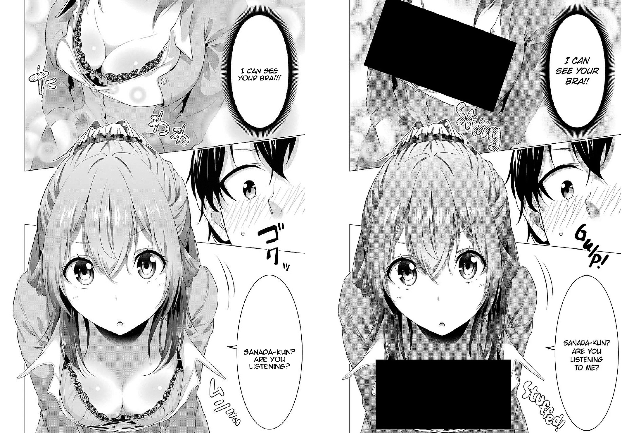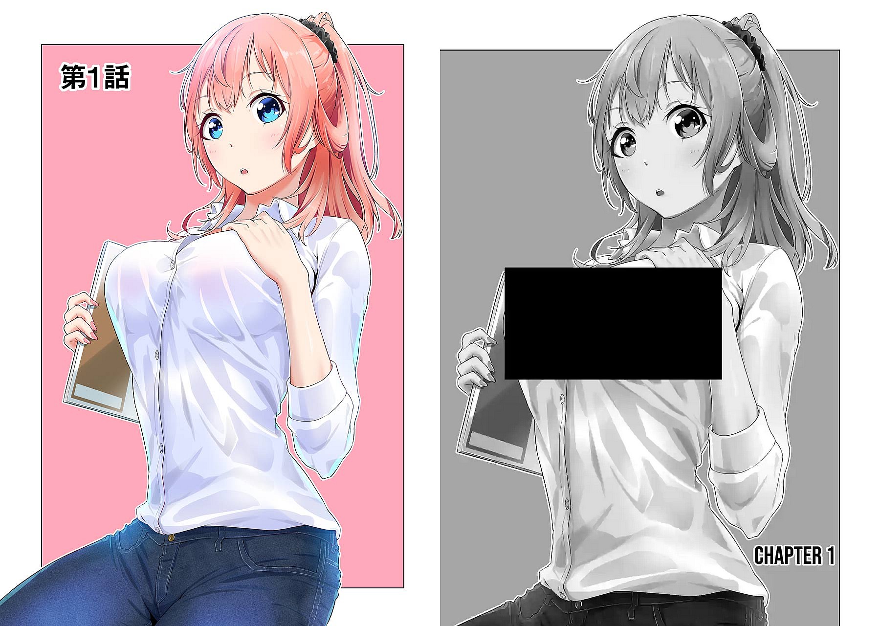 One such example can be seen in My Dress Up Darling’s first chapter. Therein, a panty-shot centered between Marin’s legs has had its black bar removed, but the details of her crotch have been ‘smoothed out’ in an attempt to make the art slightly-less lewd.