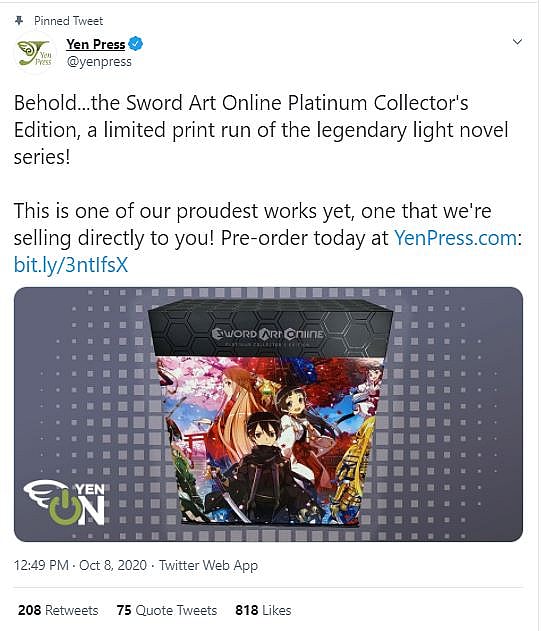 At New York Comic-Con, Yen Press announced they will be publishing the Sword Art Online Platinum Collector’s Edition.