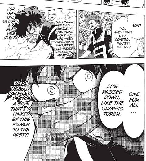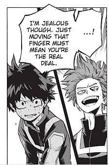 He tells Deku, “I’m jealous though. Just moving that finger must mean you’re the real deal.”