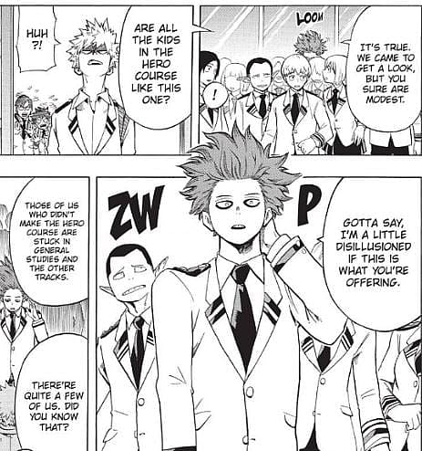 Not only does he reveal he’s unimpressed by students in the Hero course, but he reveals he’s still stuck in General Studies, as he didn’t make the cut for the Hero Course.