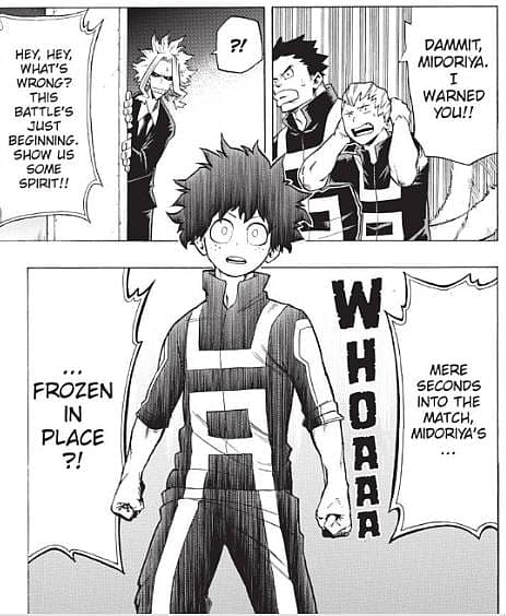 In the midst of the his battle against Shinso, Deku unsurprisingly falls under the effects of Brainwashing and is ordered by Shinso to simply disqualify himself by walking out of the arena’s boundaries.