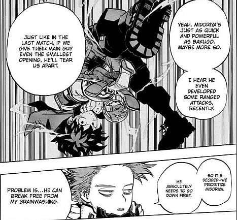 He takes the lead in strategizing how to defeat Deku’s team, suggesting they prioritize eliminating Deku. He even suggests teaming up with Monoma in order to take Deku down.