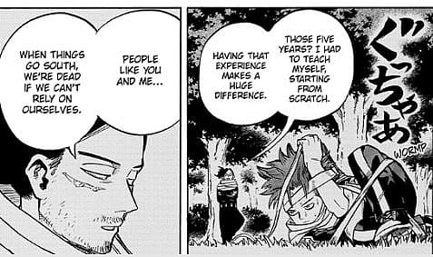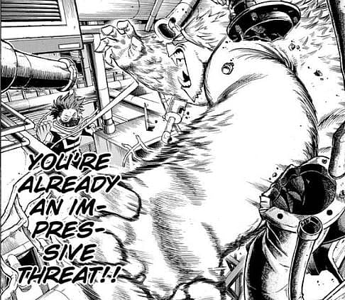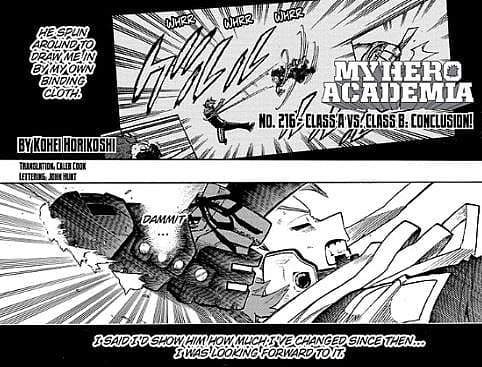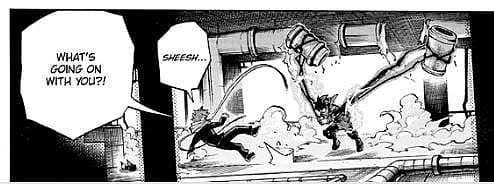 This training is then put to good use, as he is able to surprise Midoriya using the Binding Cloth and uses it to bring a number of large pipes down upon the Class 1-A student’s head.