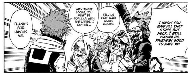 Ojiro explains, “The Cavalry Battle… I have no memories of anything that happened up until the tail end.” He even hints that it might be due to Shinso’s quirk and speculates that “it’s probably his quirk that did it…”