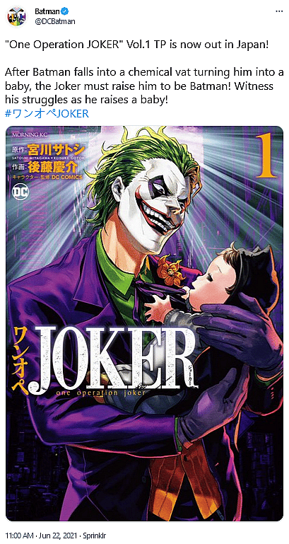 DC Comics has officially released the first volume of the ‘One Operation JOKER’ series, a spin-off manga which sees the Joker responsible for raising a Batman-turned-baby into the Dark Knight he was meant to be, to overseas Batman fans in Japan.