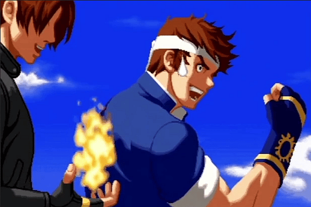 After discovering that his idol was actually one of his own schoolmates, Shingo proceeded to beg Kyo to train him, hoping to someday be able to wield fire in the same way as the then-reigning King of Fighters champion.