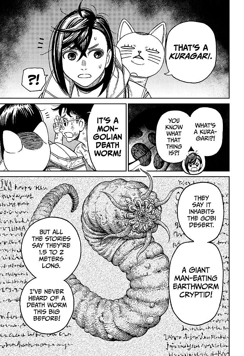 With an appearance best described as ‘what if Winnie the Pooh’s acid-fueled pink elephant dream turned into an actual, outright nightmare’, the Mongolian Death worm in Dandadan is, as described by protagoniost Okraun, “a giant man eating earthworm cryptid that inhabits the Gobi desert.”