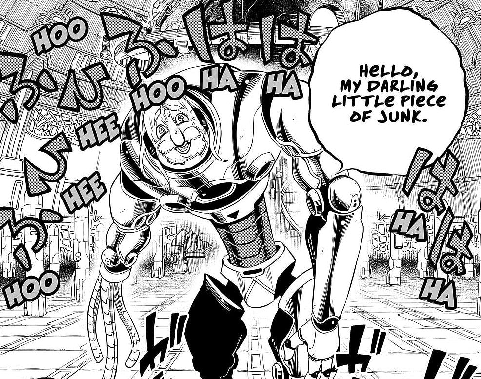 Despite his aforementioned facade, in reality, he and his coworkers hate machines with the passion of a thousand suns, viewing machines as nothing but junk to be abused and destroyed at his whim. This sadism even extends to his assistant, Hermit, an android who he treats like his daughter.