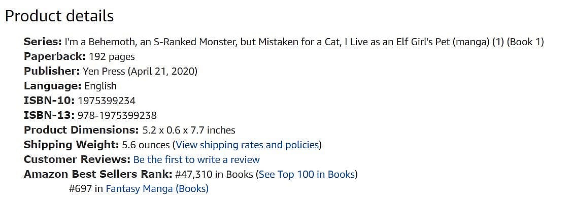 As of this writing the first volume is already in the top 700 Fantasy Manga books on Amazon.