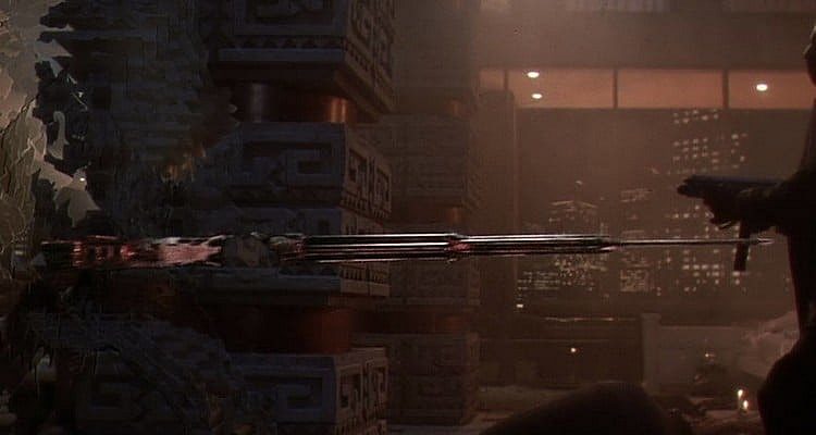 After the first Predator movie, the alien needed new weapons to showcase in the sequel. The net gun was the result, and a particularly gnarly way to die as the net crushes its victim’s body.