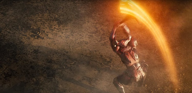 Seen in previous trailers and BvS, Steppenwolf’s attack leaves an omega brand on the Earth. It serves as an attack, as we see him using it on the Amazonian cavalry. It also acts as a brand through which Apokolips’ corruption will affect Earth.