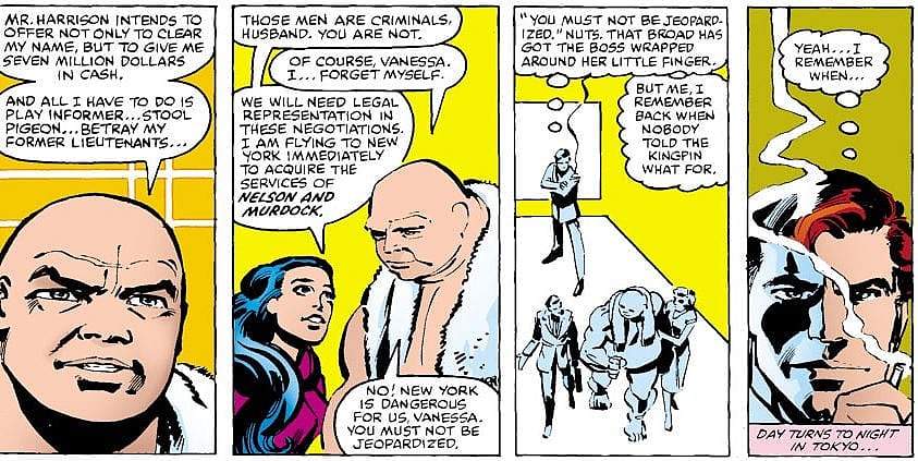 In fact, his wife, Vanessa Fisk, would let the Kingpin know she would be acquiring the services of Nelson and Murdock.