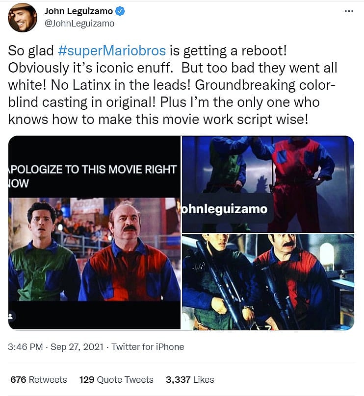 Reacting to this announcement on Twitter, Leguizamo stated, “So glad Super Mario Bros. is getting a reboot! Obviously it’s iconic enuff. But too bad they went all white!”