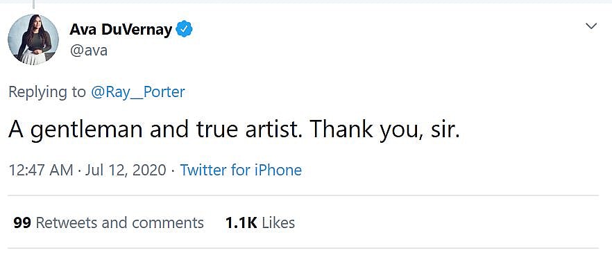 This got a positive reply from the director and others. She called Porter a “gentleman and true artist.”
