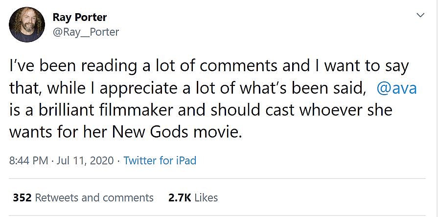 He wrote he reads the comments and appreciates what fans say but says DuVernay “is a brilliant filmmaker and should cast whoever she wants.”