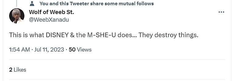 Others concurred with Abdul. One user wrote, “This is what DISNEY & the M-SHE-U does… They destroy things.”