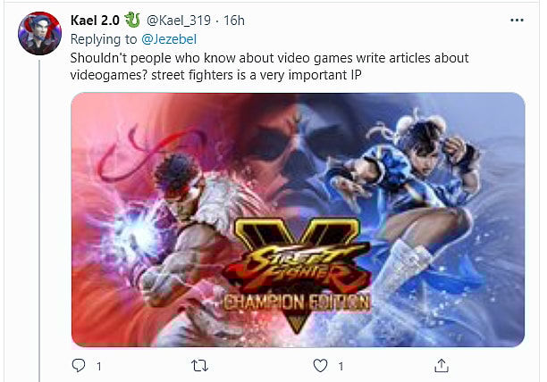 Kael_319 wrote, “Shouldn’t people who know about video games write articles about videogames? street fighters is a very important IP.”