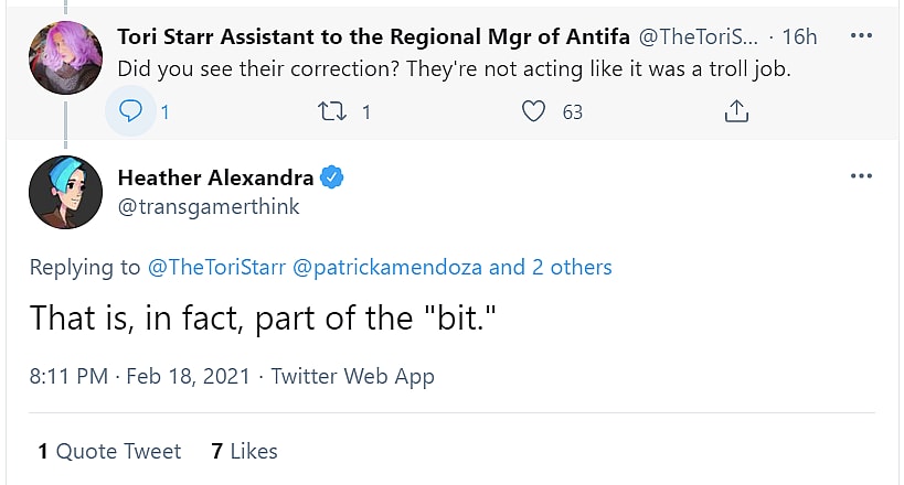 Not only would Jezebel try to play it off as a joke, but Heather Alexandra, known for injecting identity politics into video game journalism, would also attempt to come to the publication’s defense.