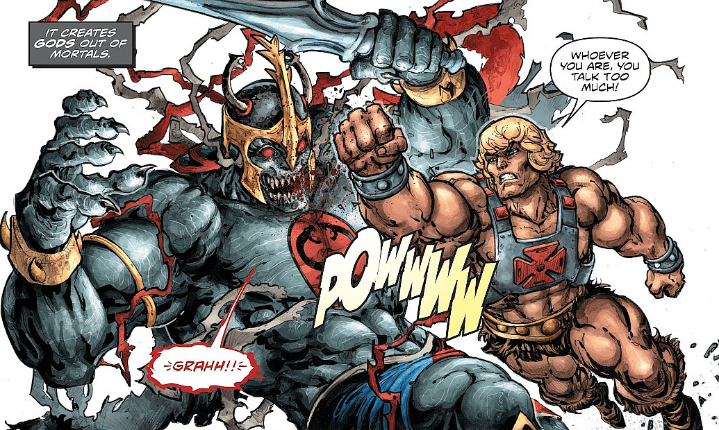 Goyer continued, “And this was a new He-Man that Battle Cat and many people didn’t think was worthy of the sword. So it was a story of the character earning the sword but, more importantly, earning the friendship of Battle Cat, who just thought this guy was a lightweight. I really liked it. I thought it was a fun story. There was a lot of humor in it, and it creeps up on you because Battle Cat sort of grudgingly accepts him, and it’s Battle Cat’s acceptance of He-Man that gave this version of the story heart.”