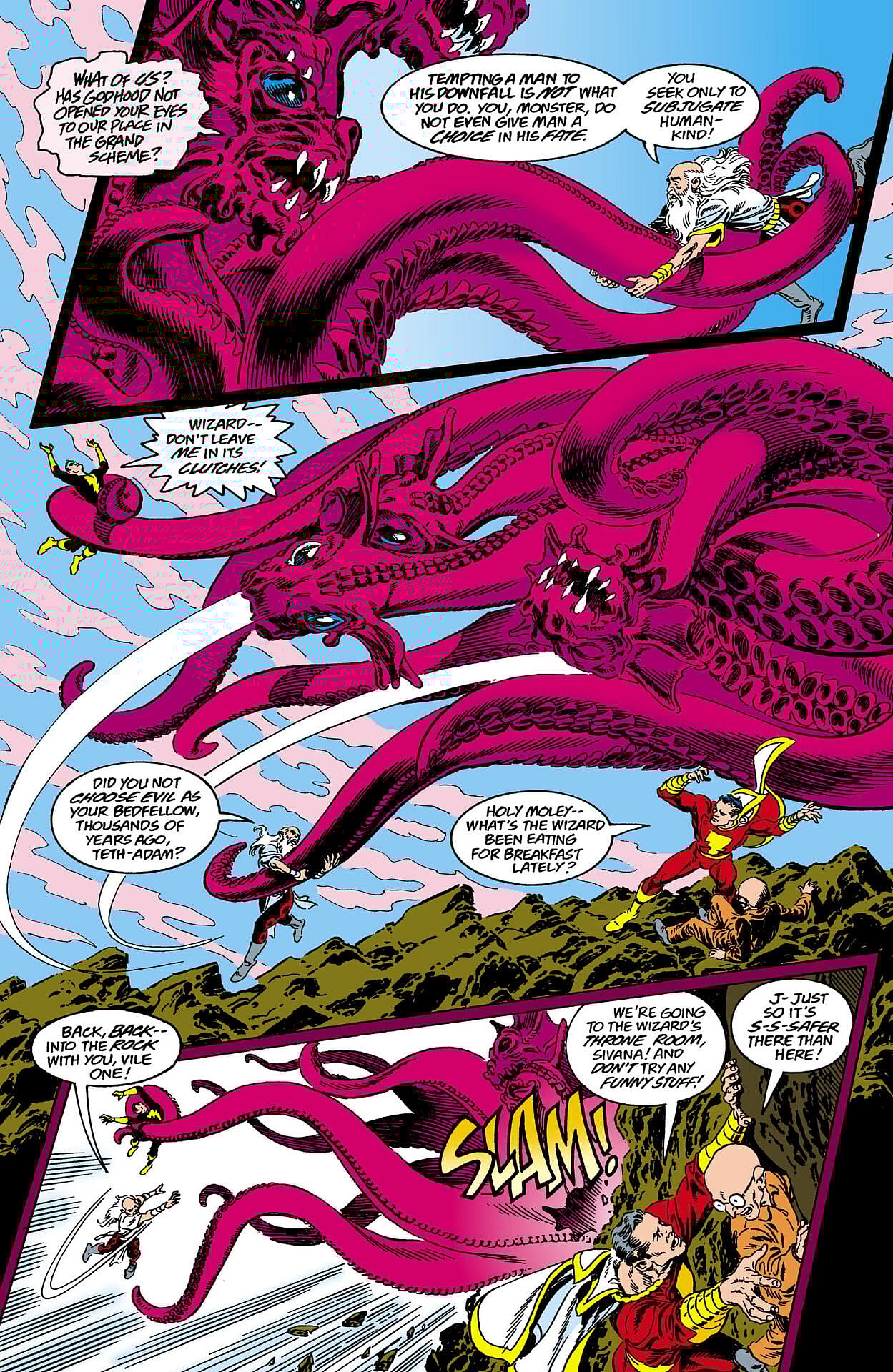 The dragon could be a callback to the comics when Shazam fought a tri-headed serpent hydra of sorts known as the Three Face of Evil, but WoG doesn’t make note of that.
