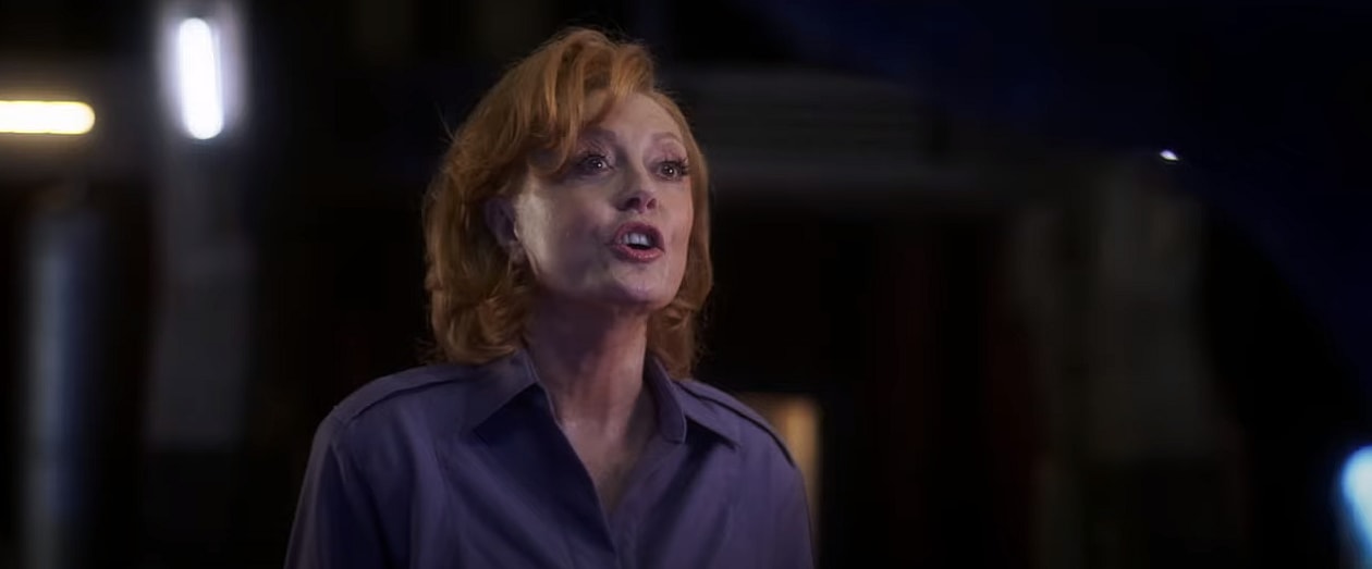 The scene likely includes a racial context given Susan Sarandon previously described her Victoria Kord charcter as the “white military industrial complex” in an interview with Jimmy Fallon in September 2022.