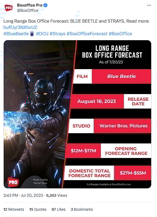 These predictions are a significant increase from Box Office Pro’s original long-range predictions. The outlet originally predicted the movie would bring in between $12 million and $17 million in its domestic opening weekend and only $27 million and $55 million in its entire domestic run.