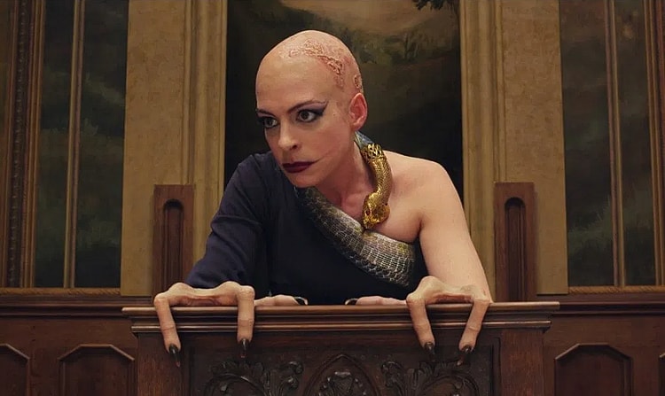 In the remake, Hathaway’s version of the Grand High Witch is depicted with hands bearing only three fingers apiece, similar to the real-world congenital disorder ‘ectrodactyly’, in an attempt to visually reinforce her ‘monstrous’ nature