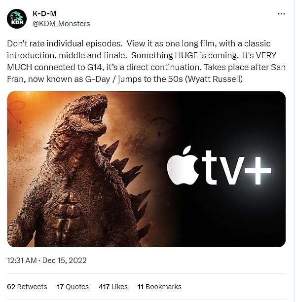 Film journo K-D-M (@KDM_Monsters on Twitter) is sharing some of what they know, but carefully, so as to not ruin the anticipation. That isn’t to say their followers don’t want to know the nitty-gritty – quite the opposite, in fact. K-D-M has standards that are made clear in the post below pleading for understanding from fans.