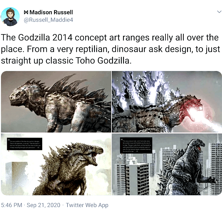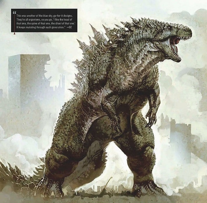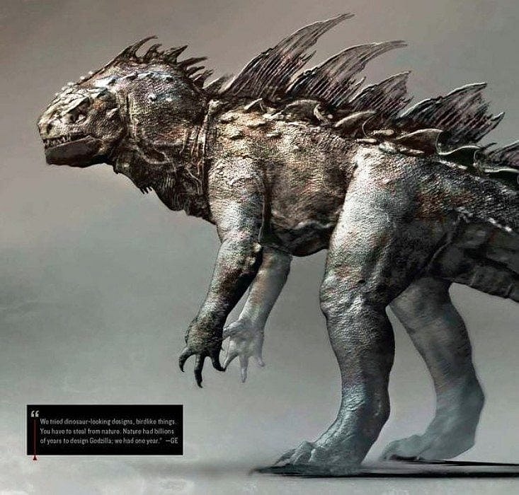 “The Godzilla 2014 concept art ranges really all over the place,” says their post. “From a very reptilian, dinosaur ask design, to just straight up classic Toho Godzilla.”
