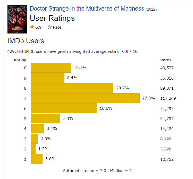 The movie has a 6.9 out of 10 from over 430,000 IMDb users, one of the worst rated Marvel Cinematic Universe films on the site.