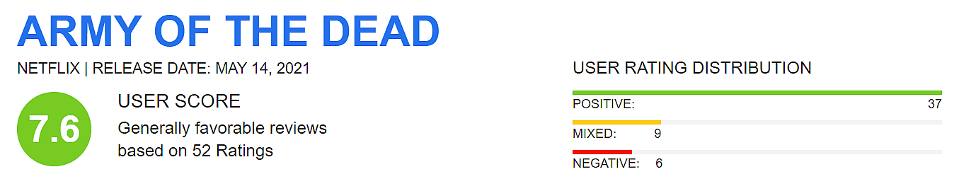 Audience Scores Arrive For Zack Snyder’s Army of the Dead