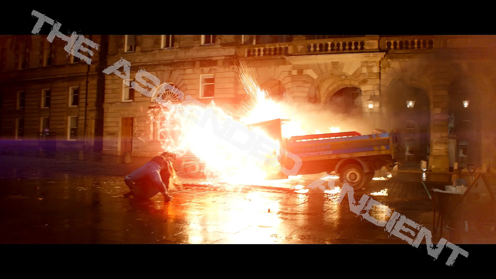 Next up we get what appears to be a high flying action scene with Elizabeth Olsen’s Scarlet Witch. She appears to blow up a truck Denton Construction truck. However, based on the second image where she is doing her best Neo impression from the Matrix, she might actually be trying to contain the explosion like she did in the opening scenes of Captain America: Civil War. Regardless, it looks like we are definitely going to get some awesome Scarlet Witch scenes in Avengers: Infinity War.