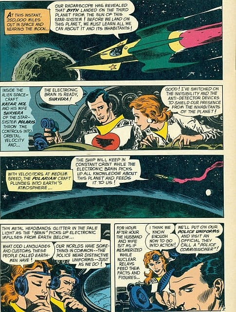 That’s what gave Carter his powers until the Silver Age when his origin was updated to make him and Hawkgirl police from planet Thanagar. The Star Cruiser brought them to Earth and was used as a base when they began fighting crime in Midway City.